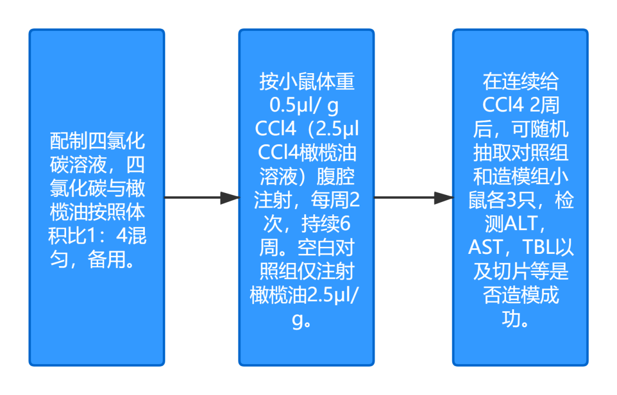 雄性的BALB/c小鼠10周龄(BALB/C比C57敏感,造模成功率更高)或SD大鼠(雄性200克左右)等,橄榄油,四氯化碳,注射器,电子天平。